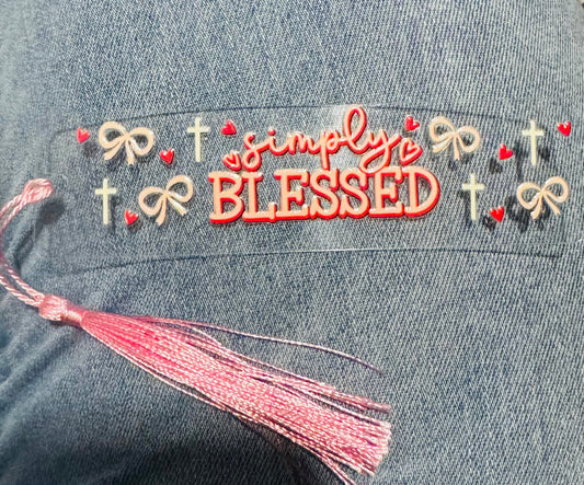 "Simply Blessed" Acrylic Bookmark with Pink Tassel | Faith & Gratitude Gift
