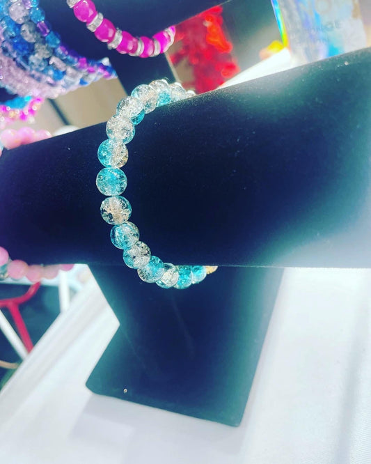 Beach Breeze Cracked Glass Stretch Bracelet - Ocean Blue & Sparkling Clear